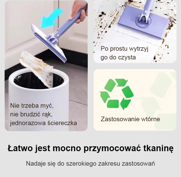 Wyczyść cały dom w 5 minut, pożegnaj się z brudnymi rękami! Po sprzątaniu nie musisz dotykać, płukać ani wyciskać brudnej ścierki! Po prostu wyrzuć ją do kosza!