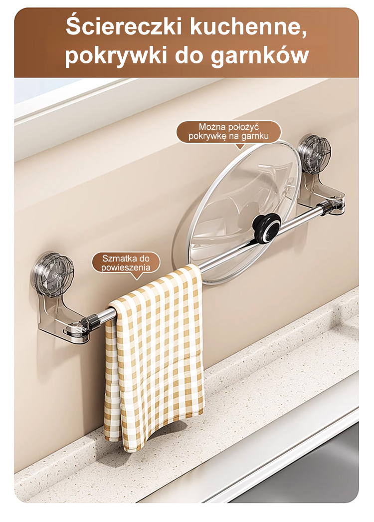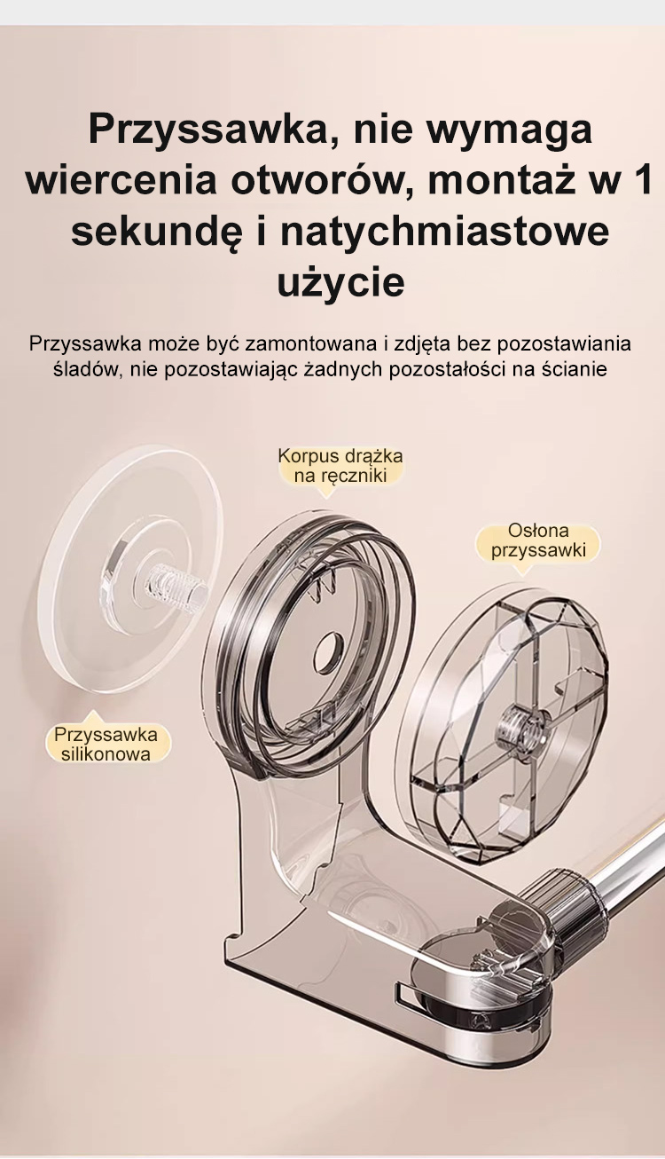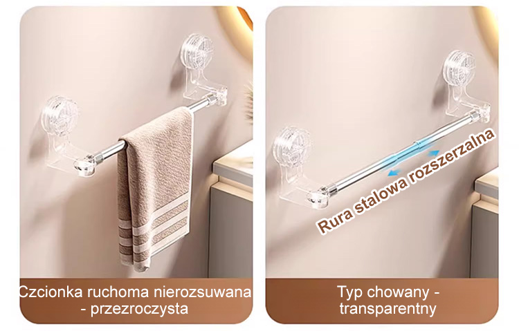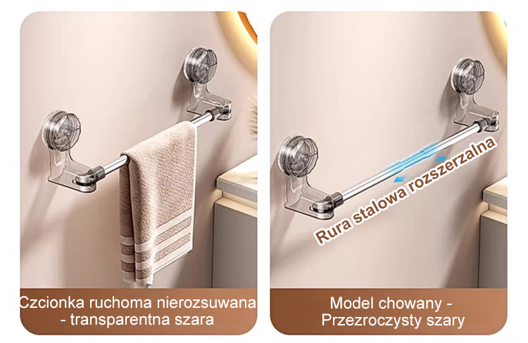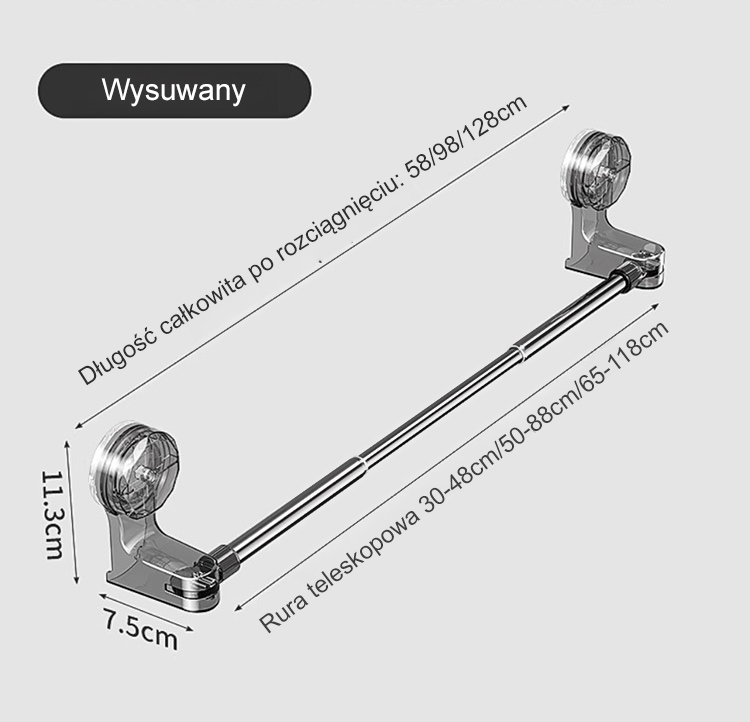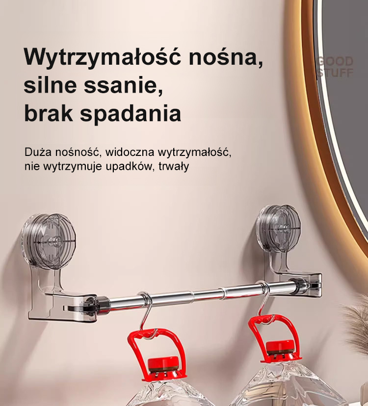 Rozciągany drążek na przyssawki bez potrzeby wiercenia.