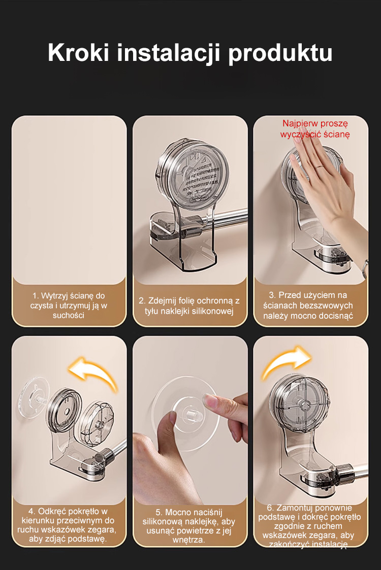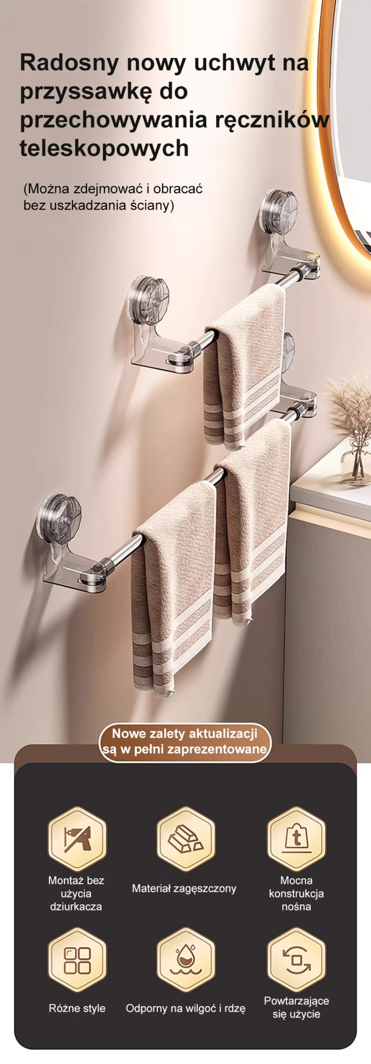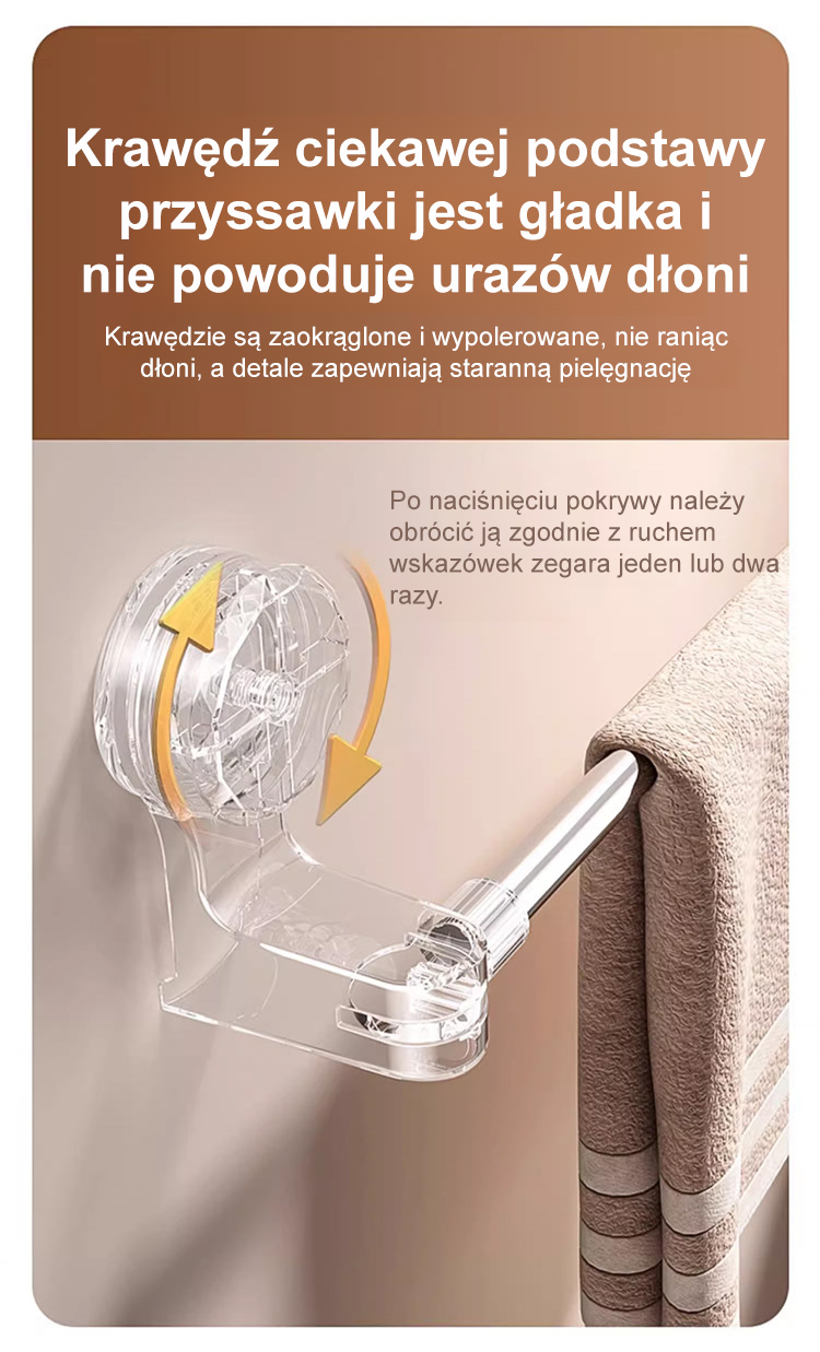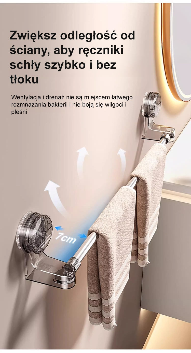 Rozciągany drążek na przyssawki bez potrzeby wiercenia.