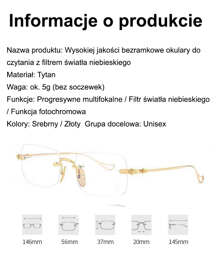 👓Ultralekkie bezramkowe okulary do czytania z fotochromem